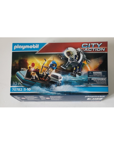 PLAYMOBIL CITY ACTION Policier avec réacteur dorsal et canoé réf 70782 dès 5 ans