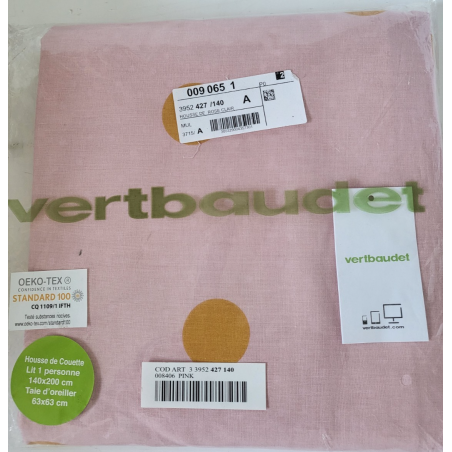 -20% VERT BAUDET Parure housse de couette 140x200 cm rose à pois + 1 taie 63x63 cm 22,00 € 17,60 € Ajouter au panier