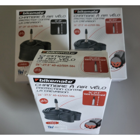 -20% BIKEMATE Lot de 3 chambres à air 27"-29" 40-62/584-635 Valve Sclaverand 27"-29" 23,00 € 18,40 € Ajouter au panier