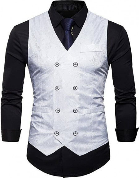 Showu Paisley Gilet Homme Sans Manches Slim Fit double boutonnage