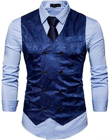 Showu Paisley Gilet Homme Sans Manches Slim Fit double boutonnage