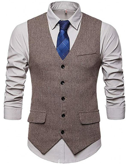 Showu Paisley Gilet Homme Sans Manches Slim Fit simple boutonnage