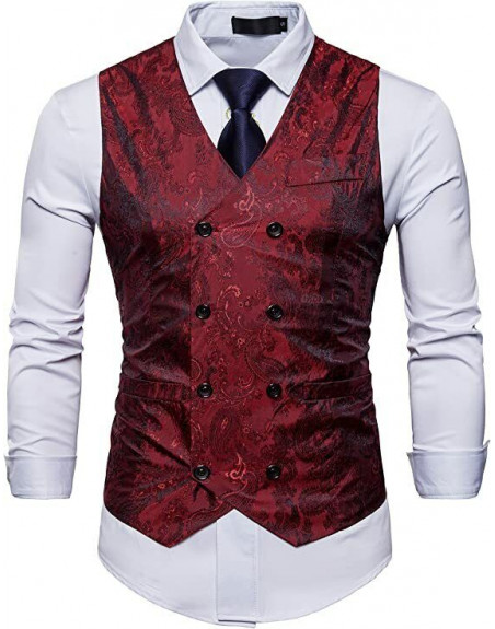 Showu Paisley Gilet Homme Sans Manches Slim Fit double boutonnage