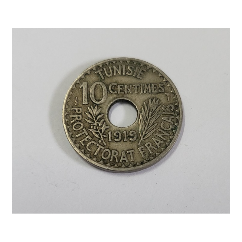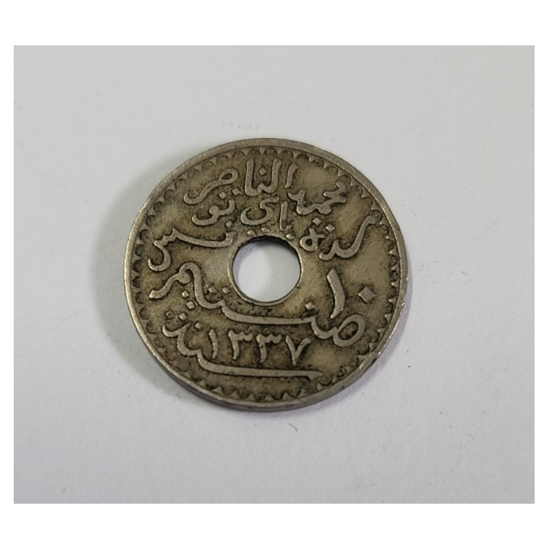 10 centimes laiton de nickel Muhammad al-Nasir (protectorat) Tunisie 1919 (586)