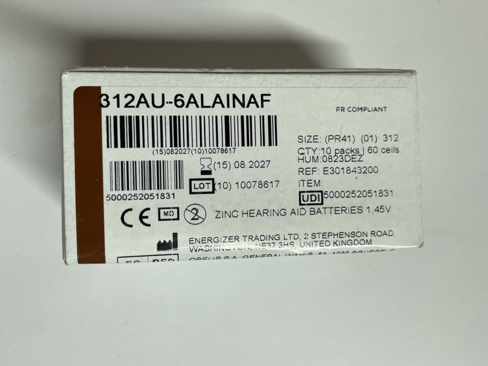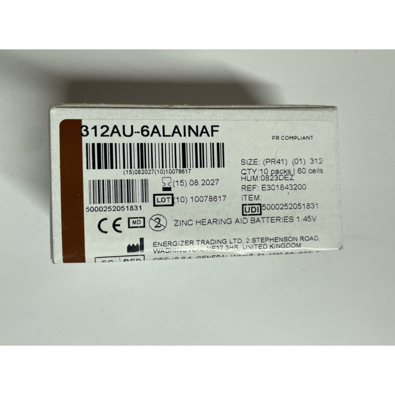 Piles pour appareils auditifs 1,45 V – PR41, taille 312, 60 unités 10 boîtes