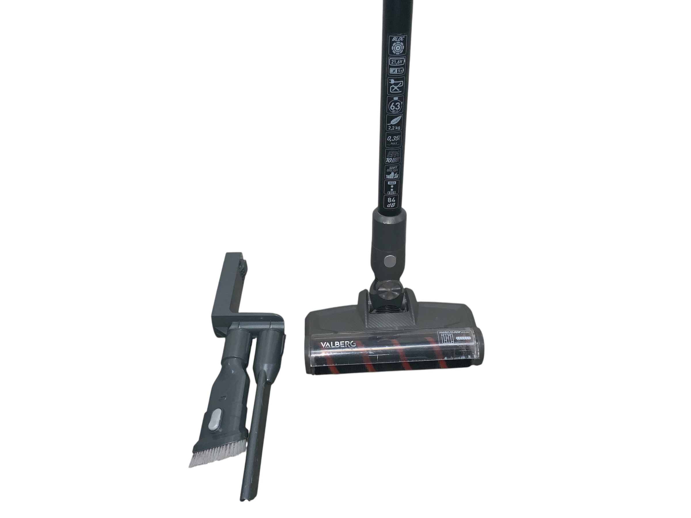 Aspirateur balai Valberg Cyclonic S11 – Autonomie Longue et Performance Cyclonique 🌀🔋 Le Valberg Cyclonic S11 est un aspirateur-balai sans fil conçu pour allier puissance, endurance et confort. Sa batterie longue durée et son format maniable en font un allié idéal pour un ménage sans effort, du sol jusqu’en hauteur. Caractéristiques principales : • 🔘 Type : Aspirateur balai sans fil 2-en-1 (balai + aspirateur à main) • ⏱ Autonomie : Jusqu’à 72 minutes en mode bas, 46 minutes en mode élevé – parfait pour tout nettoyer en 1 seule charge  • 📦 Capacité du bac à poussière : 0,50 L – suffisant tout en restant compact  • 🔇 Niveau sonore : Environ 84 dB – assez silencieux pour une puissance optimale  • ⚖️ Poids : ~2,7 kg – équilibre idéal entre légèreté et robustesse  • ⚡ Alimentation : Batterie lithium-ion 21,6 V, environ 5 heures de charge  • Filtration : Système efficace (HEPA non mentionné) pour capturer poussières et allergènes  • Accessoires & rangement : Support mural inclus & suceur combiné pour zones étroites  • Puissance d’aspiration : Moteur numérique performant avec mode turbo disponible  📏 Dimensions approximatives : H 75 cm x L 25 cm x P 17 cm — compact et peu encombrant  🔒 Garantie : 1 an incluse. 🔹 Important : • Le produit est vendu uniquement avec les accessoires visibles sur les photos (ce qui est montré est ce que vous recevrez). • Malgré notre reconditionnement complet, certaines parties de l’appareil peuvent présenter de légères traces résiduelles impossibles à nettoyer entièrement (ex. filtre, brosse, bac à poussière, etc.), sans incidence sur son bon fonctionnement. REF 7544