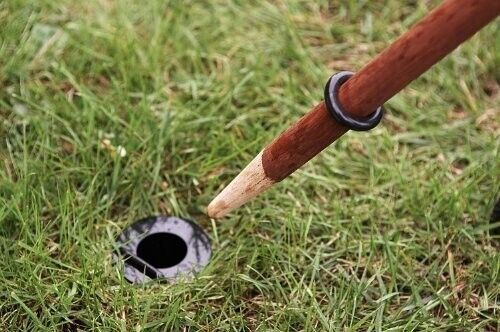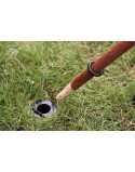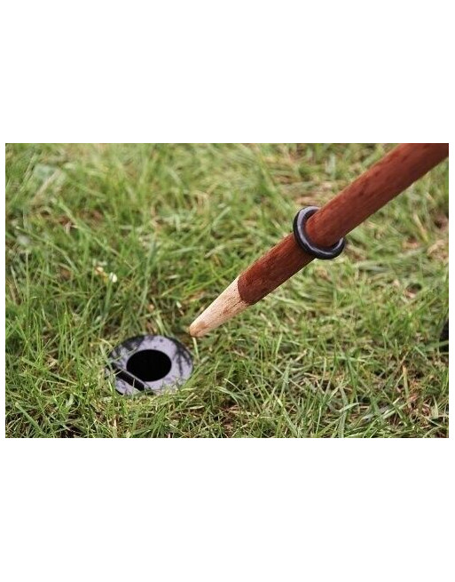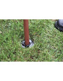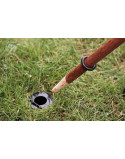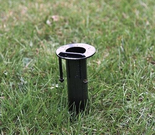 Via un anneau en caoutchouc fourni qui est tiré sur la tige de la torche, la tige est insérée dans la pointe de terre. La pointe de terre est enfoncée dans la pelouse ou entrée avec la chaussure. Il a des trous de drainage de l’eau et est au niveau du sol afin que vous puissiez le traverser avec les tondeuses à gazon, à condition que le pic de terre soit pressé assez profondément. Convient uniquement pour les torches de jardin Pipe-Line