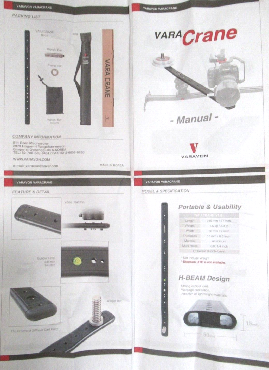 VARAVON VARA CRANE EXTENSION DE TREPIED OU SLIDER AVEC HOUSSE