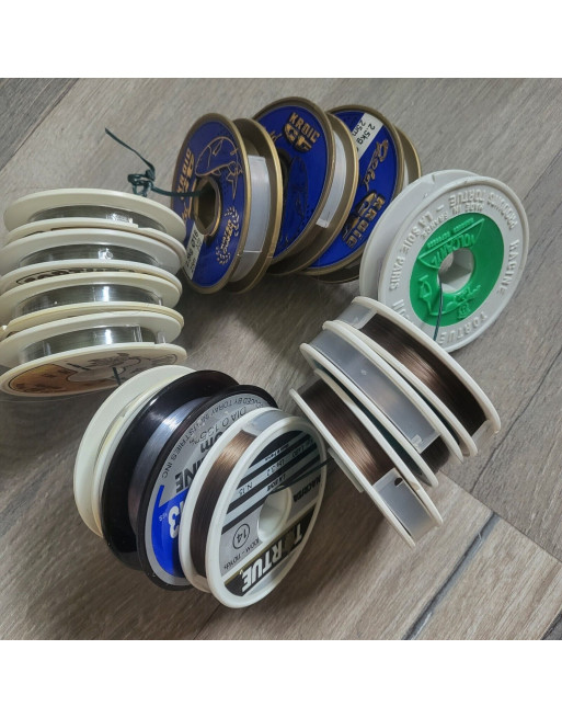 Lot de 14 bobines fil de pêche nylon diverses couleurs 0.10 0.135 0.14 0.16