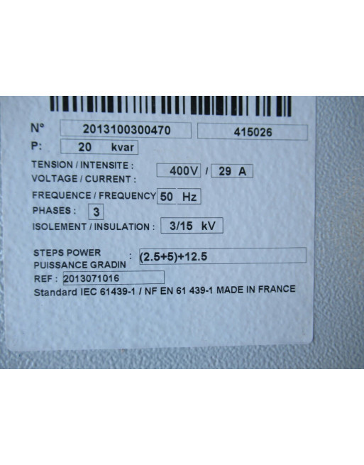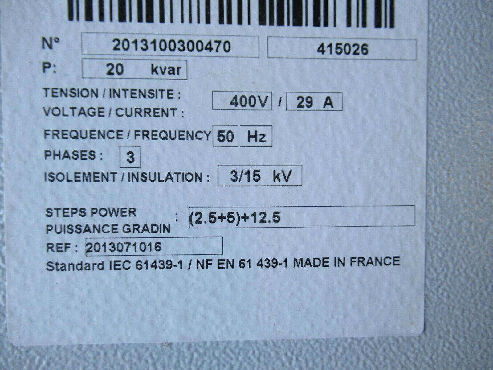 LEGRAND 415026 ARMOIRE- BATTERIE AUTOMATIQUE TRIPHASEE 400V P: 20 KVAR