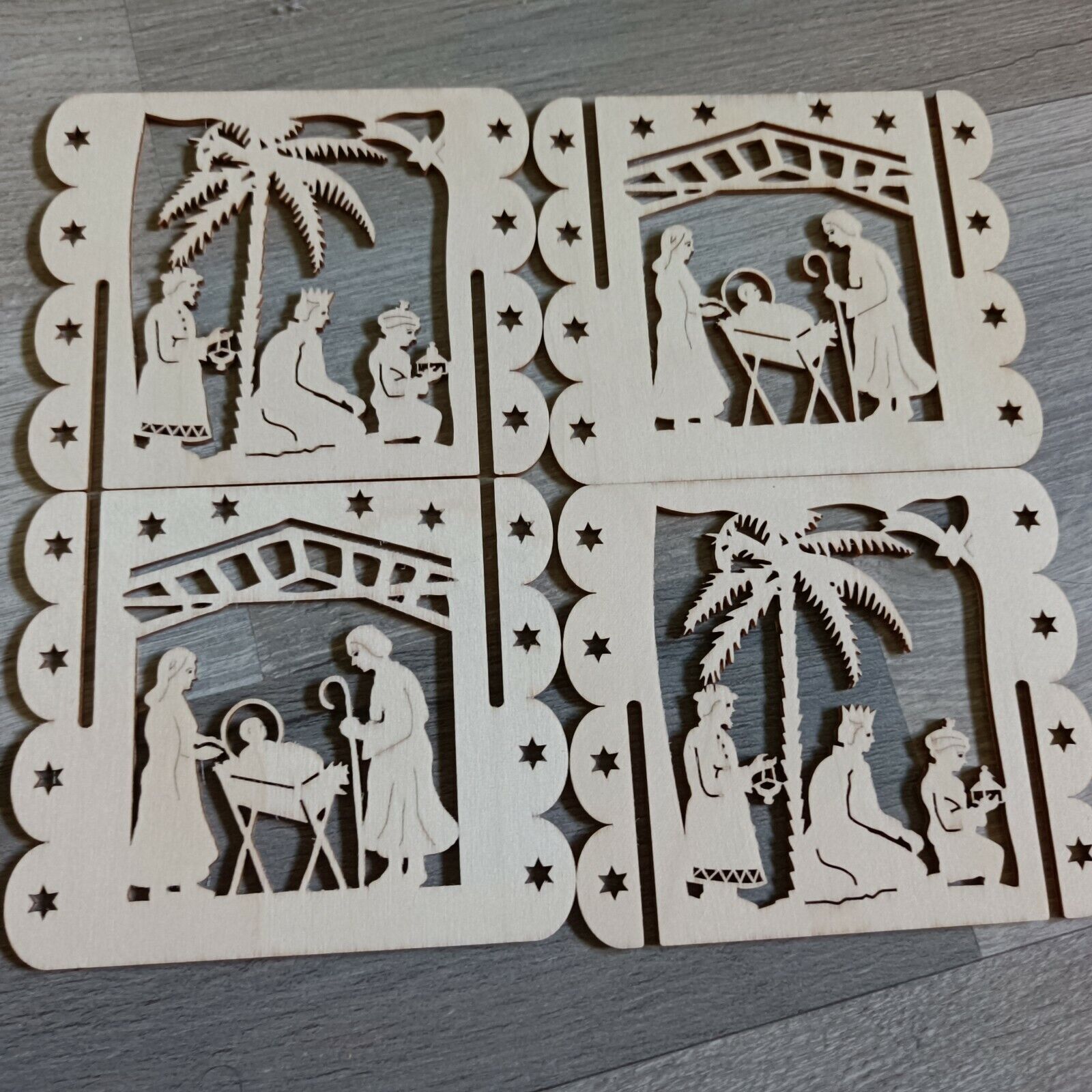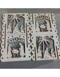 Lot de 4 décorations sous plat sous verre thème Noël en bois sculpté brut