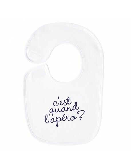 BUBBLE&CO Bavoir blanc humoristique "C'est quand l'apéro ?"