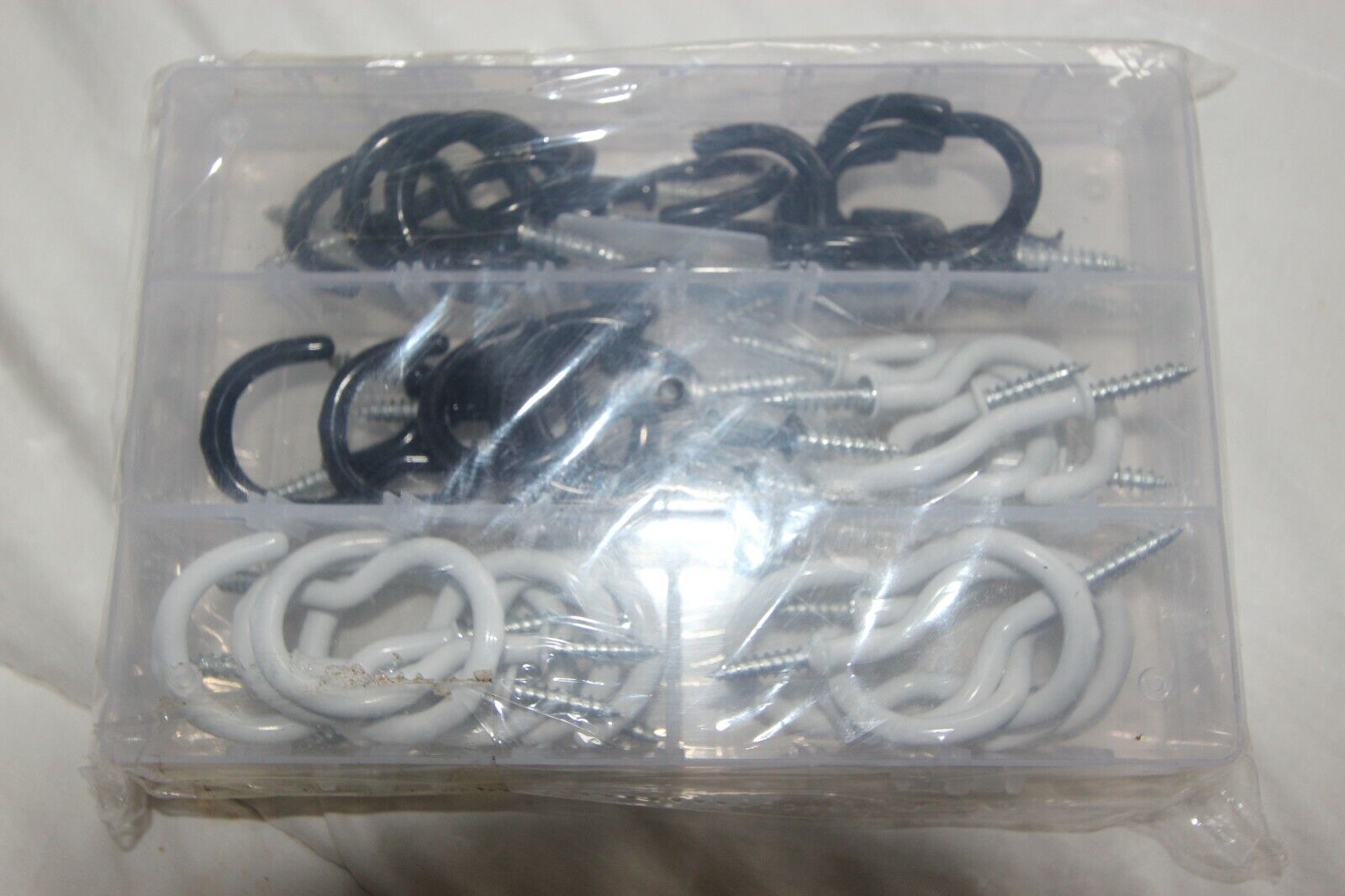 Boite de 30 crochets à visser 7 x 3.5 cm métal blanc et noir