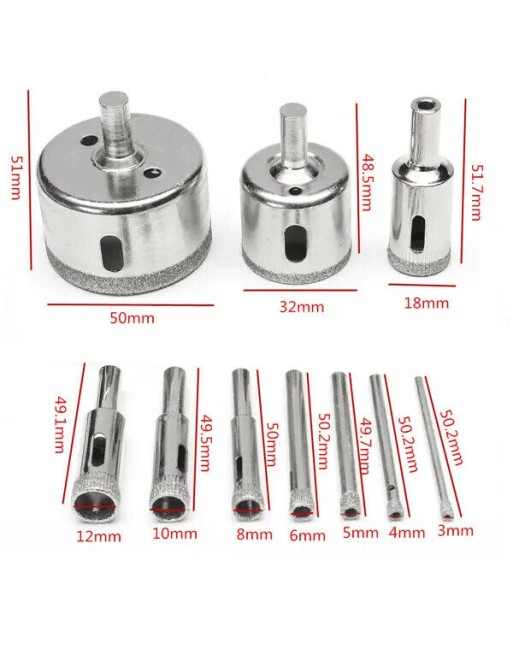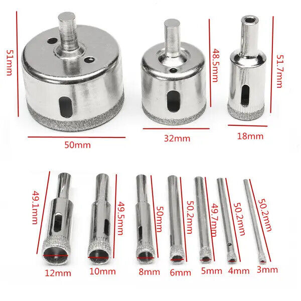 Lot de 10 Trou Scie pour Carreaux en Céramique Porcelaine Verre Marbre 3-50 mm