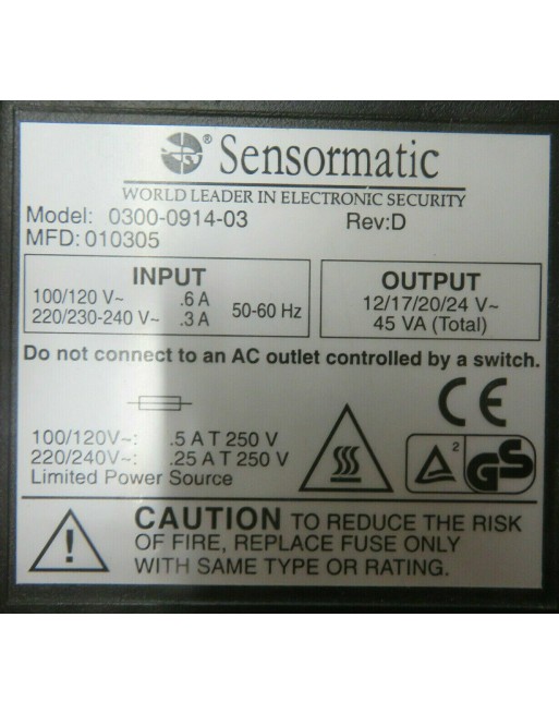 Transformateur/ Alimentation universel Sensormatic 0300-0914-03