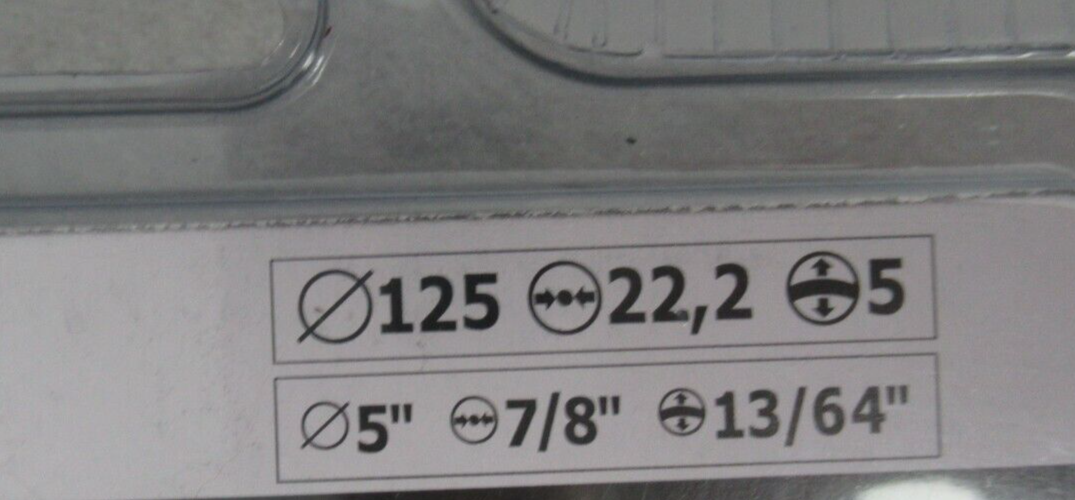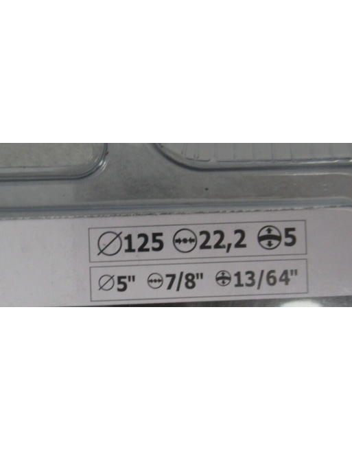• CARACTÉRISTIQUES TECHNIQUES - Diamètre: 125 mm, Taille de l'alésage: 22.2 mm, Hauteur de segment: 5 mm, Vitesse maximum: 12 200 tr/min.