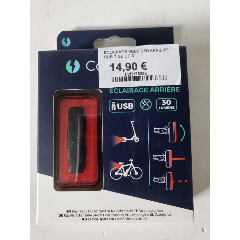 COOLRIDE Eclairage arrière USB LED rechargeable noir sur tige de selle