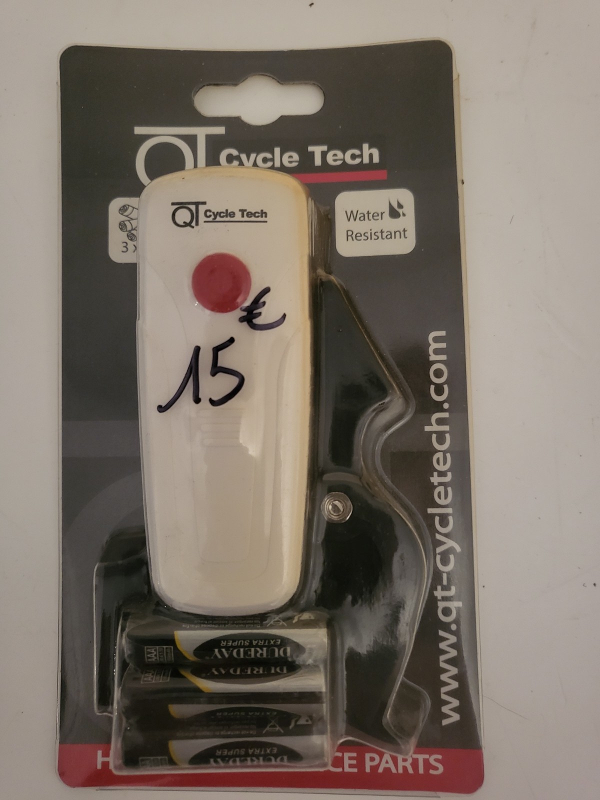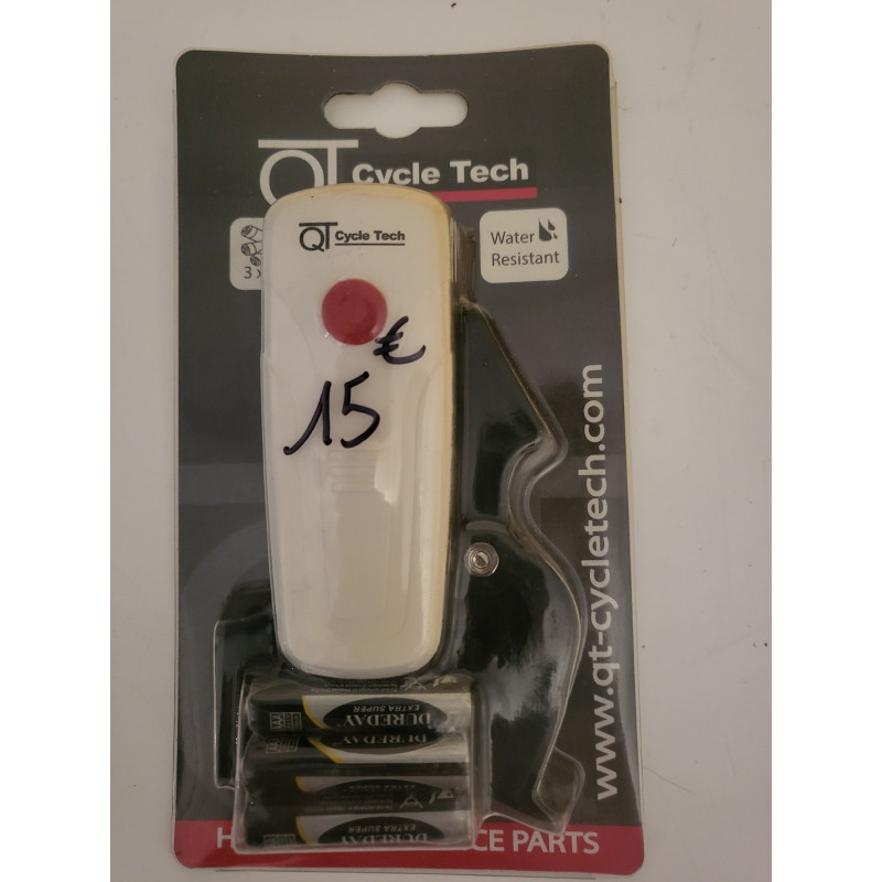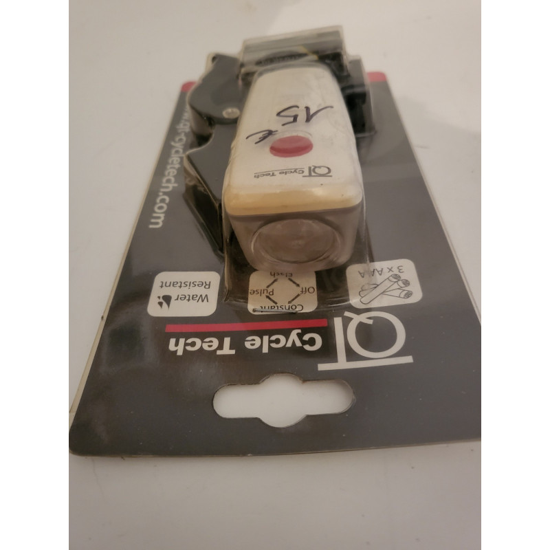 Cycle Tech phare Cette lampe Cycle Tech donne une lumière blanche super brillante. De plus, le projecteur est étanche aux éclaboussures et a une intensité lumineuse de 20 lux. Ce phare est facile à monter sur le guidon de votre vélo Spécifications :Couleur : blanc/noir Matière : plastique Type d'éclairage : LED Durée de combustion : env. 30 heures Luminosité : 20 lux Nécessite 3 piles AAA. Livré avec support.