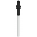 Système concentrique de diamètre 60-100 mm. Longueur : 1280 mm, dont 515 mm au-dessus du toit. Absence de formation de stalactites ou de glace. Couleur au-dessus du toit : noir. Couleur en dessous du toit : blanc. Matériau du conduit de fumée : PP