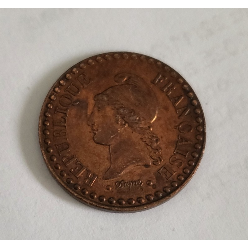 Avers : Profil gauche de la République (Marianne) aux cheveux longs, coiffée d'un bonnet phrygien ; grènetis circulaire formé de points.