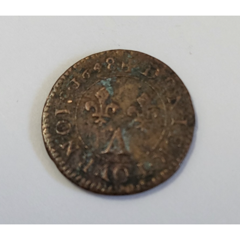 Denier tournois cuivre Louis XIII 1648 France (571)