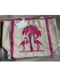 ERINLY Sac cabas Ibiza ivoire brodé fushia 47 x 32 x 20 cm (GLS)