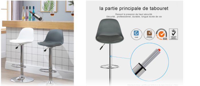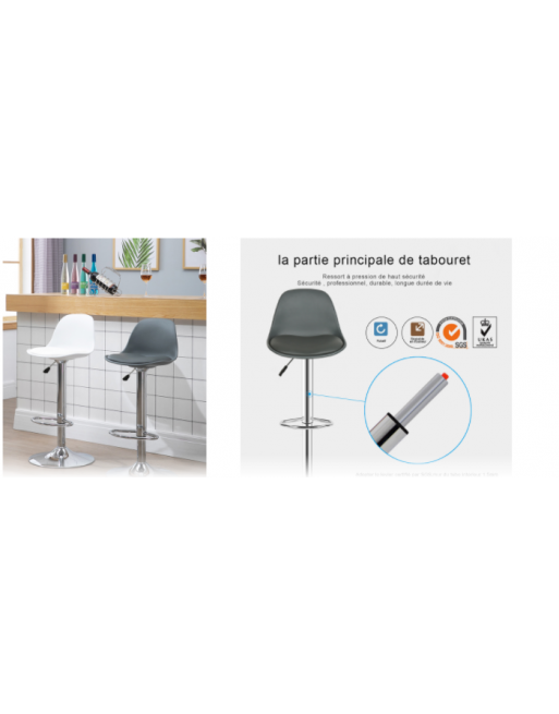 JEOBEST LOT DE 2 TABOURETS DE BAR BLANCS