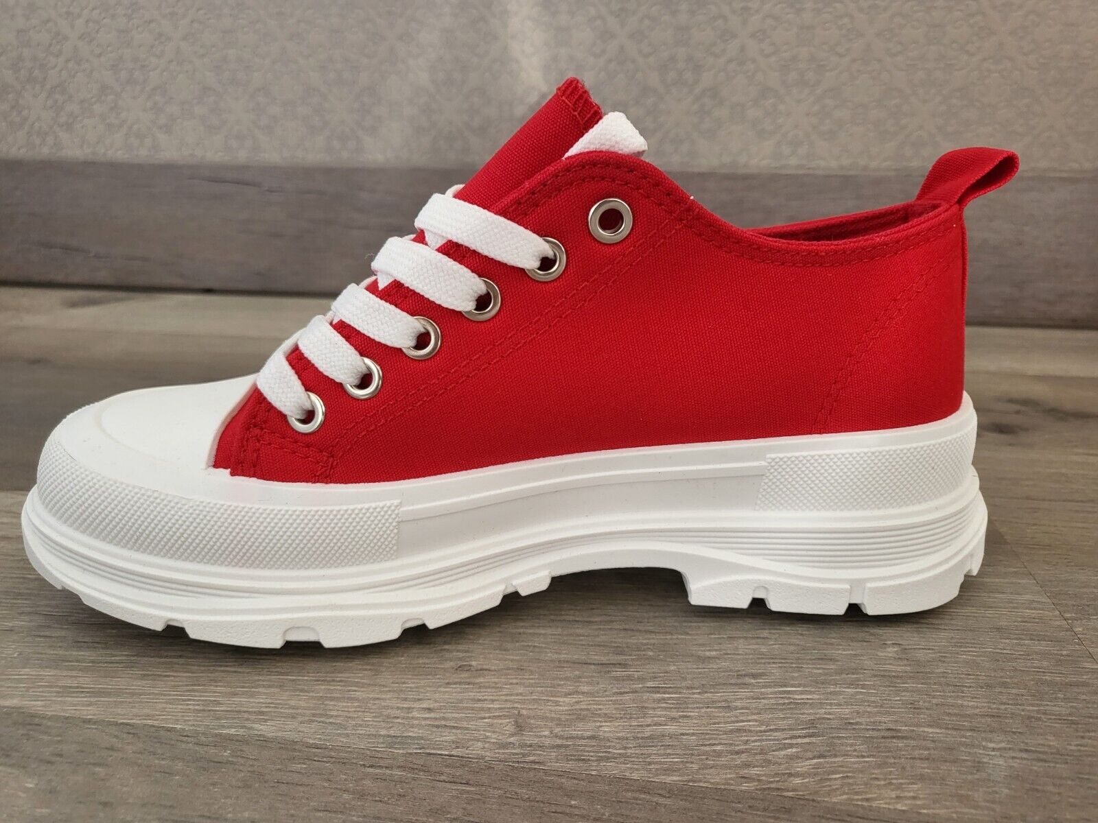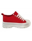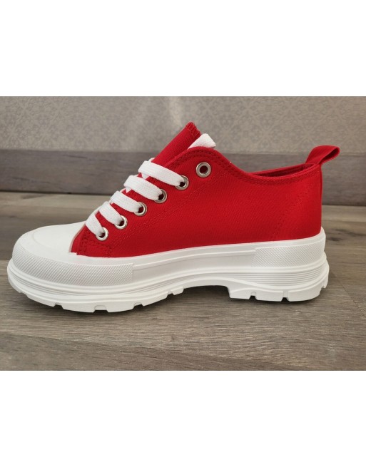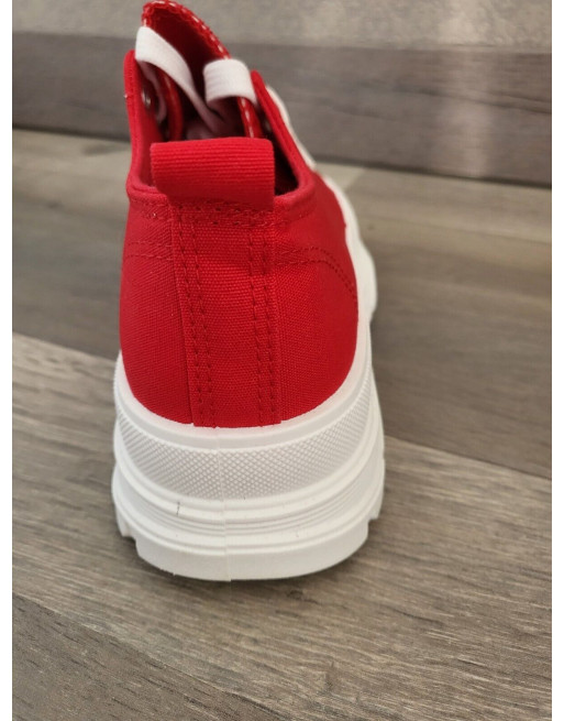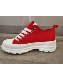 Baskets basses rouge plateforme 5 cm blanche