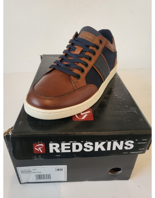 REDSKINS Baskets basses cuir cognac et marine Decade Taille 40