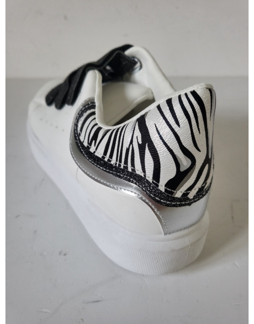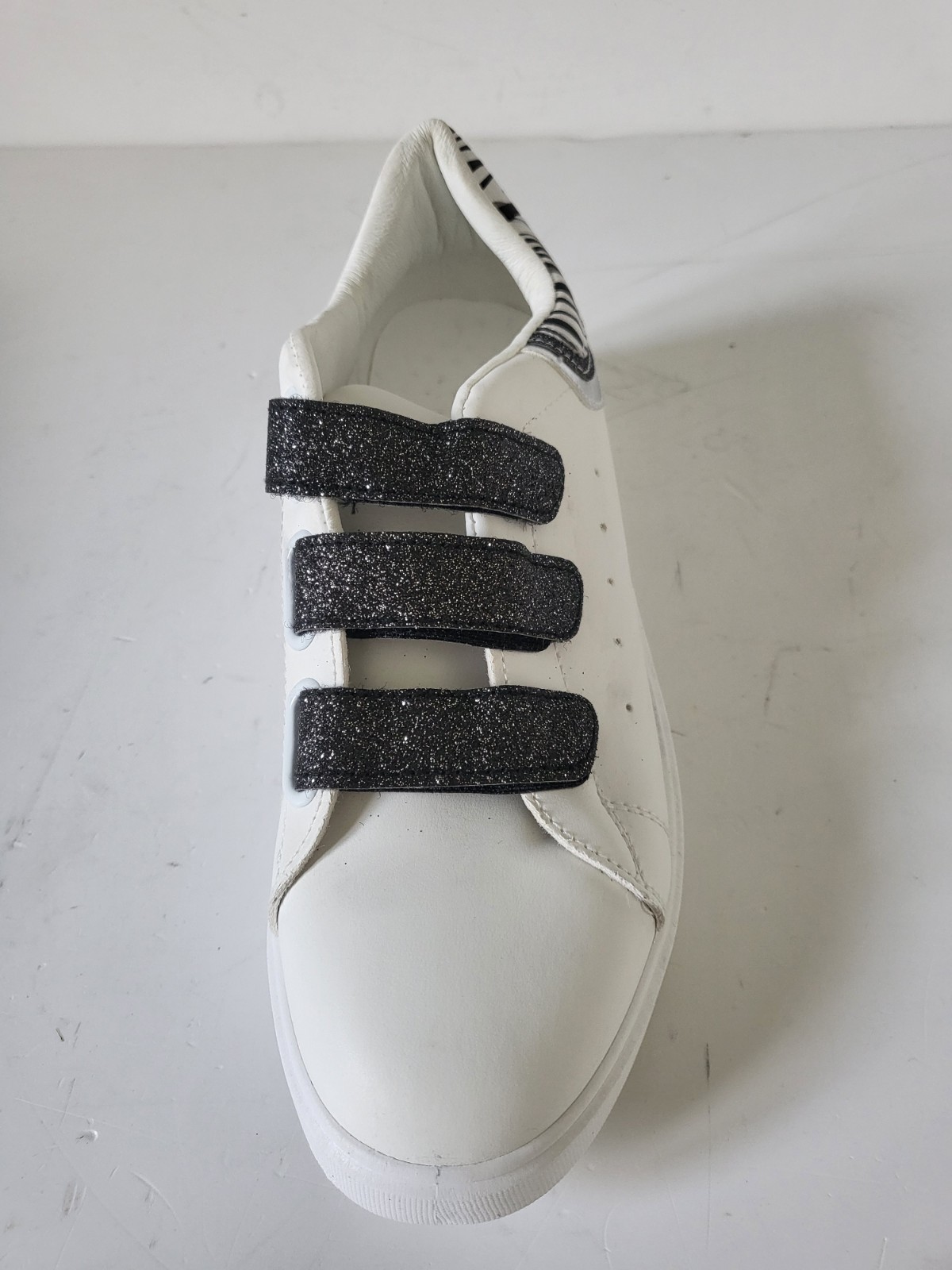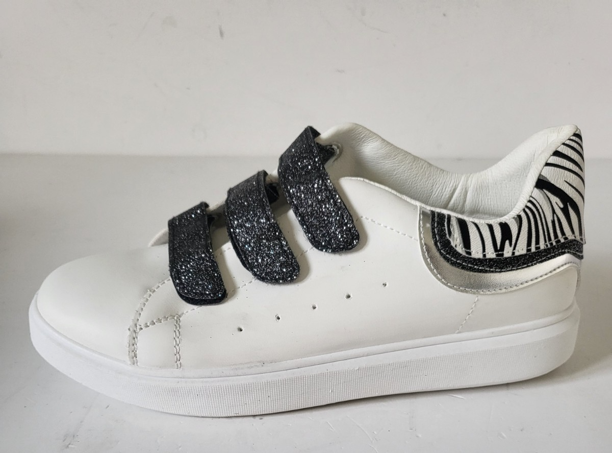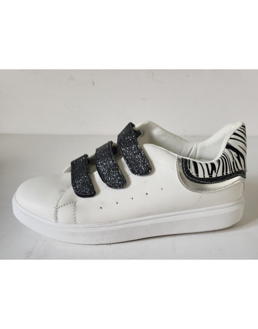 Baskets tennis blanches à scratch pailleté noir talon zébré Taille 39