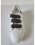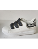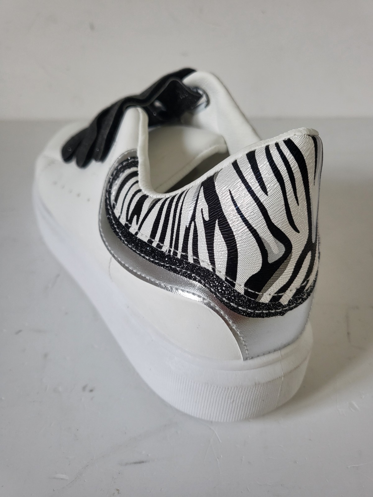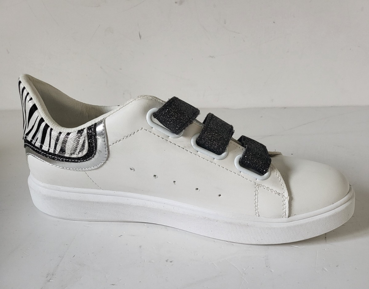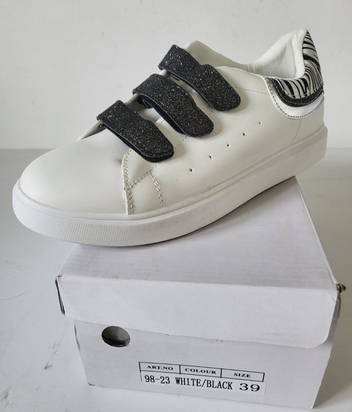 Baskets tennis blanches à scratch pailleté noir talon zébré Taille 39