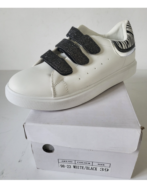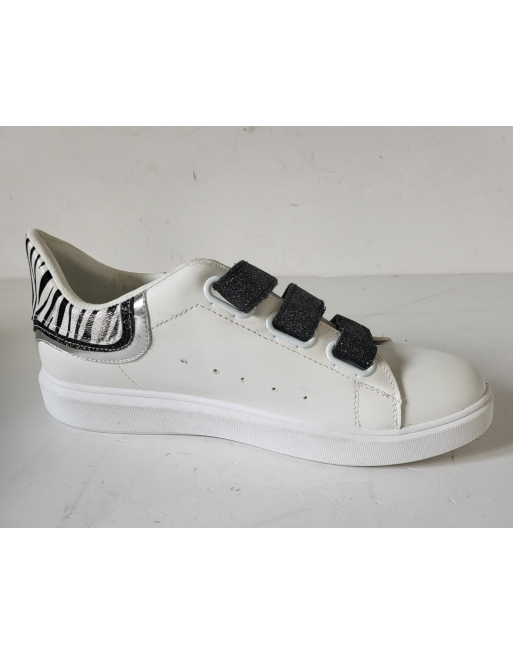 Baskets tennis blanches à scratch pailleté noir talon zébré Taille 40