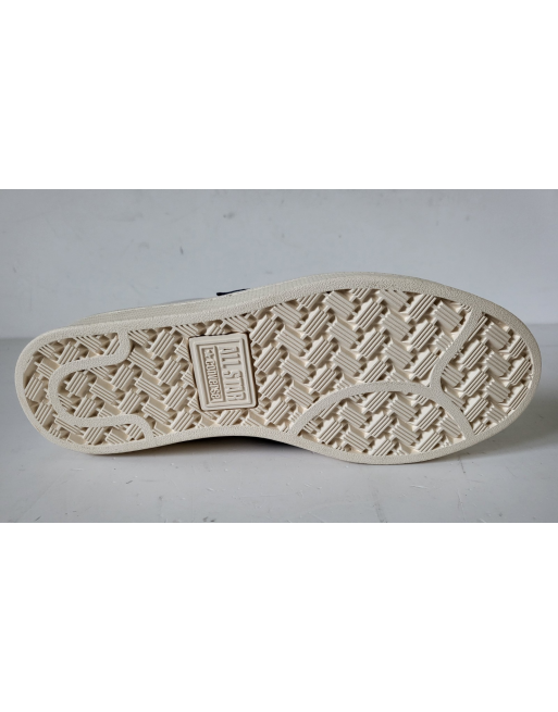 Une légende du terrain, réinventée dans un style urbain, avec des couleurs d'inspiration universitaire et des revêtements en daim pour un effet texturé
