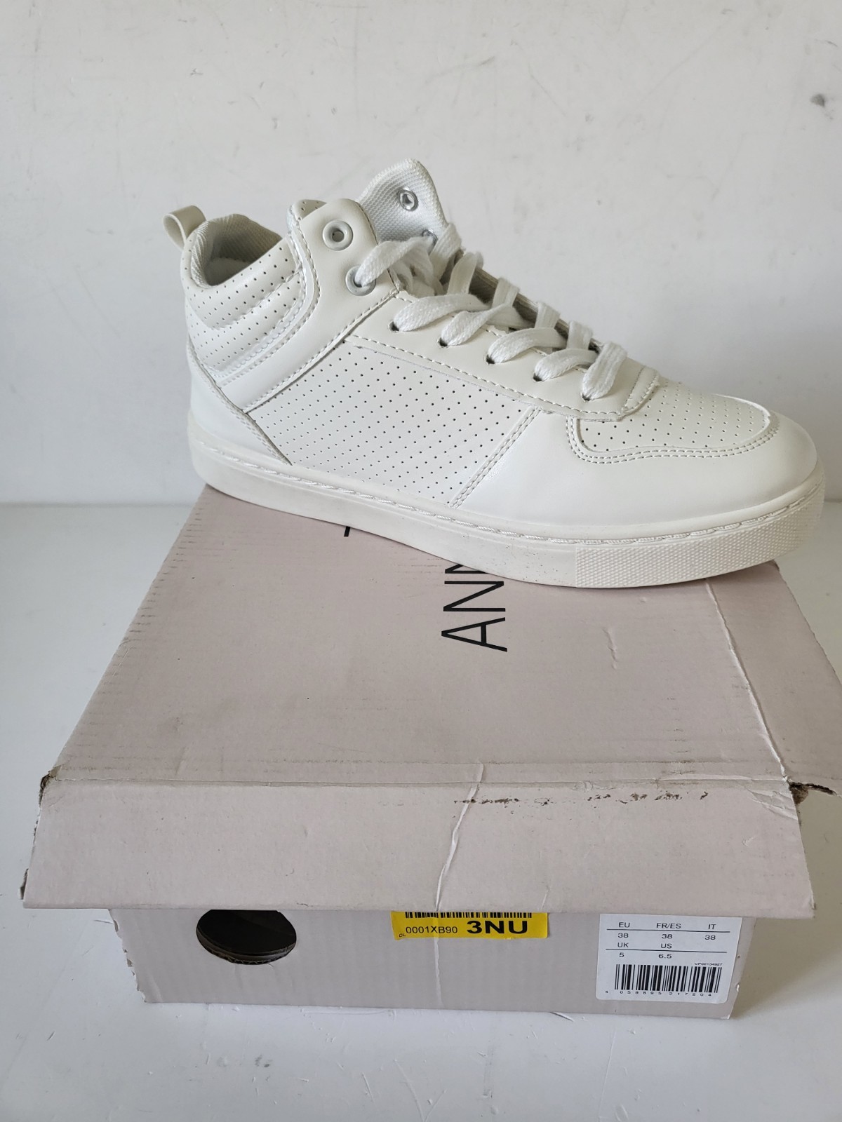 ANNA FIELD Baskets tennis blanches à lacets et fermeture éclair Taille 38
