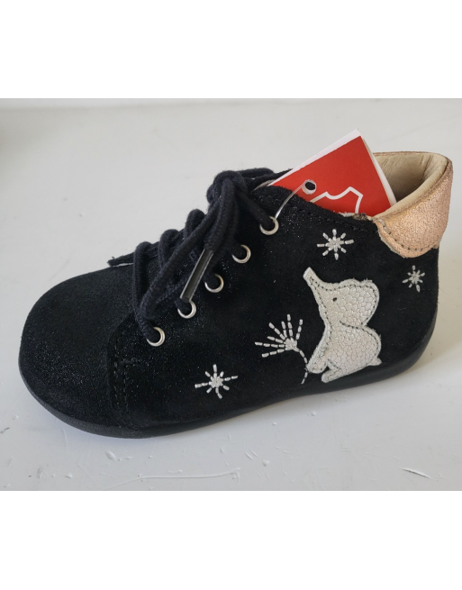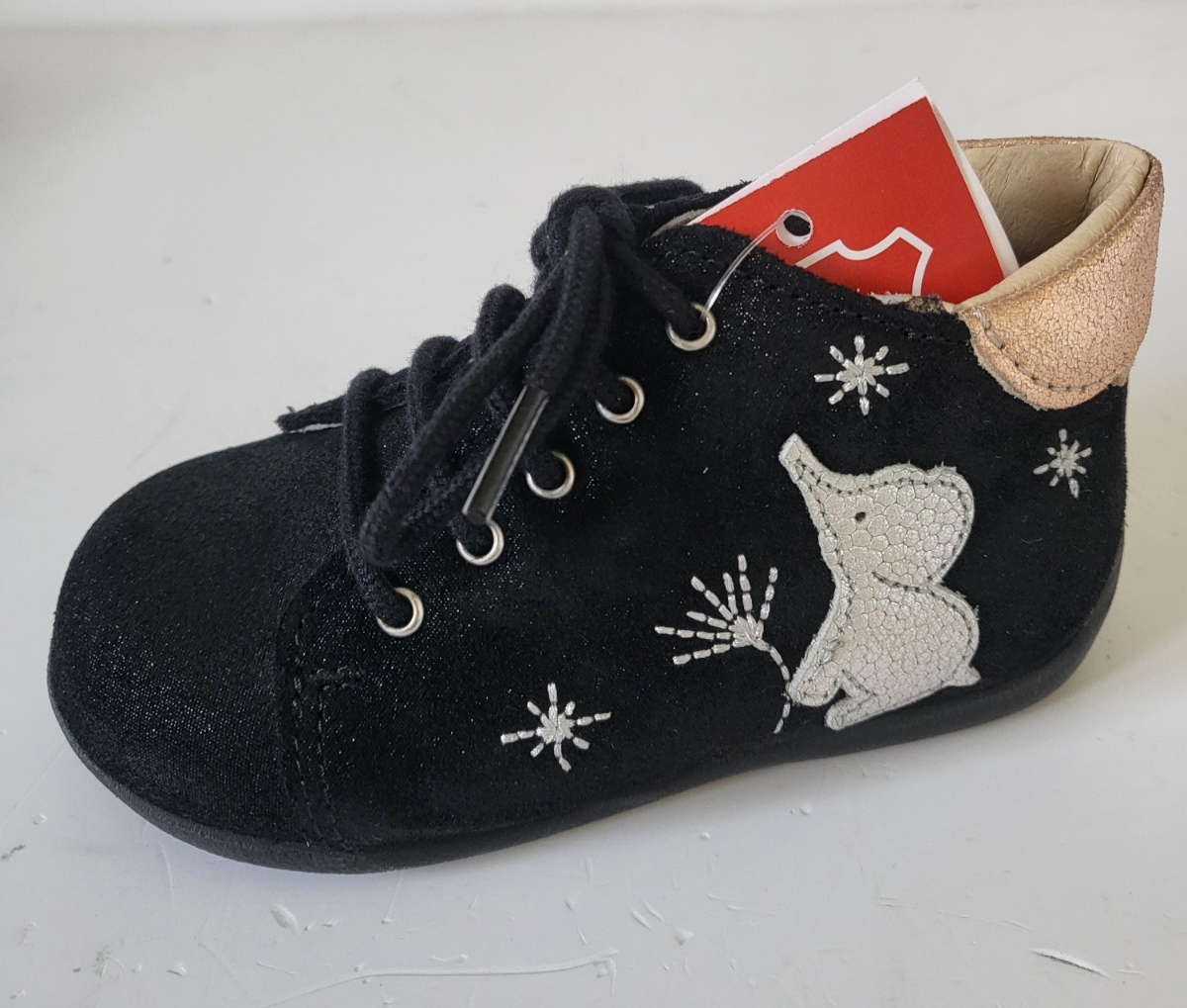 DP...am Chaussures montantes cuir noir déco élephant Taille 22