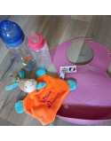 Lot biberon en verre 330 ml + biberon plastique 250 ml + bavoir + doudou