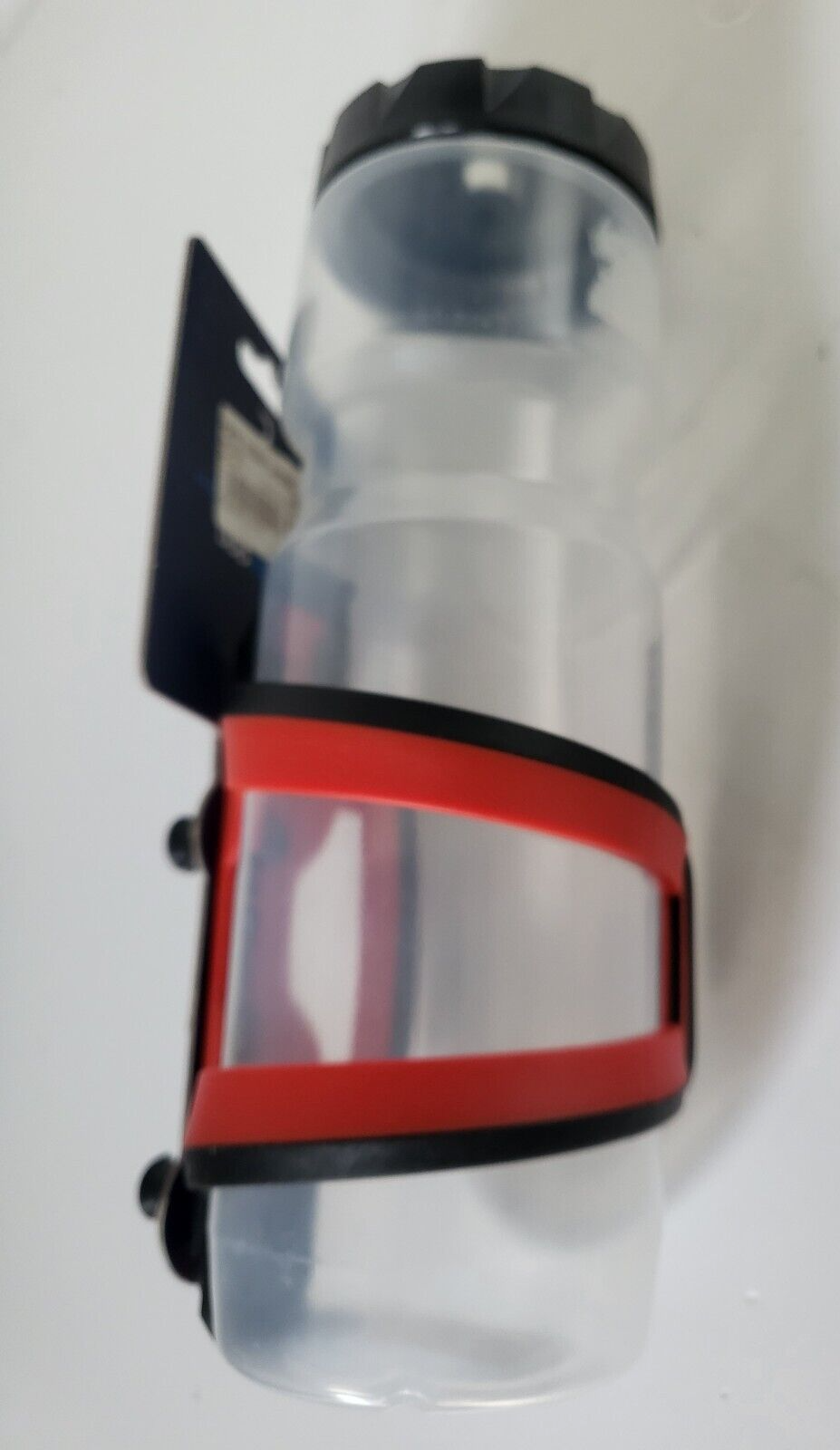 Porte bidon latéral rouge / noir avec bidon transparent