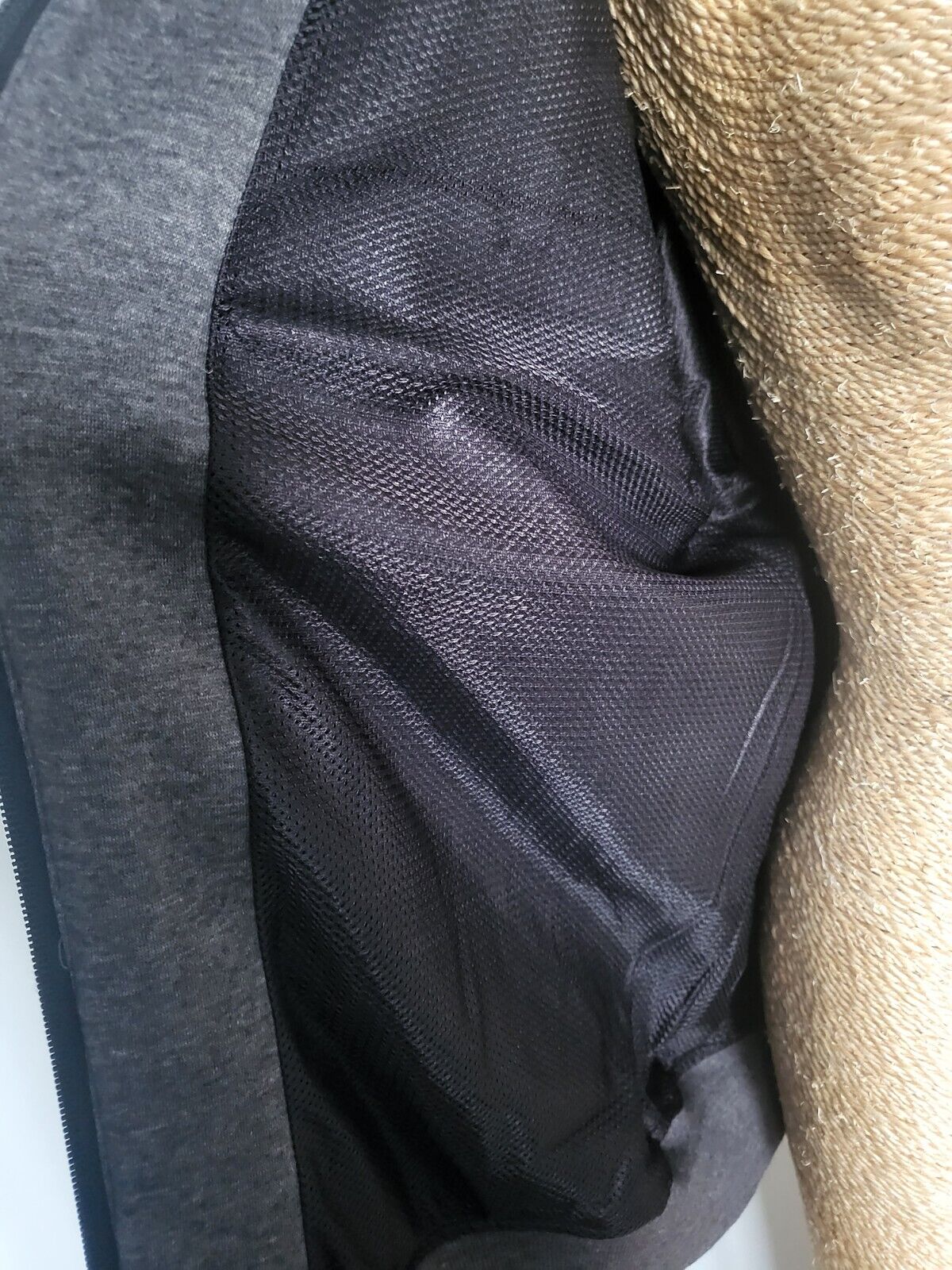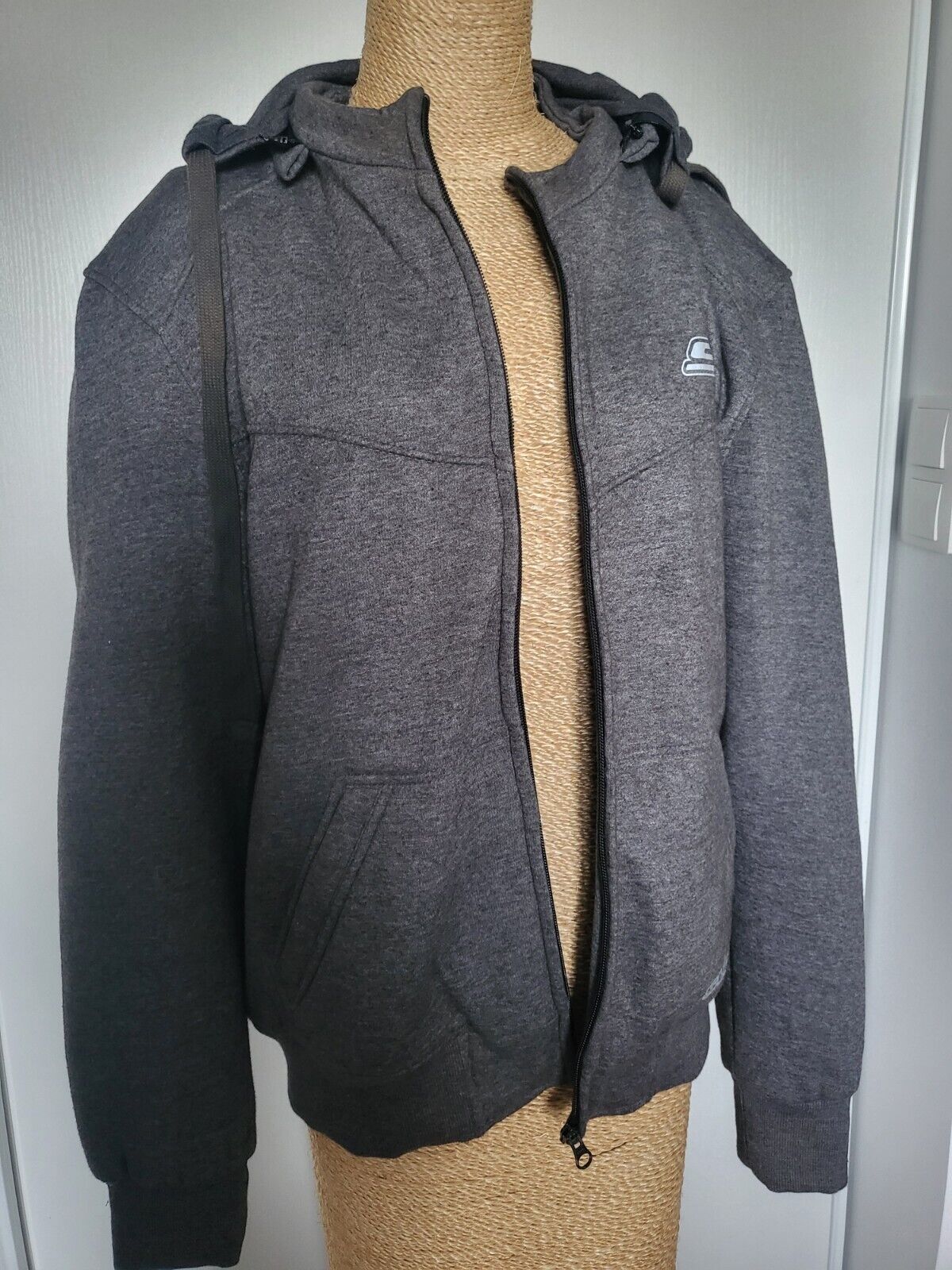 Gilet moto à capuche gris renforts amovibles dos avant bras épaules