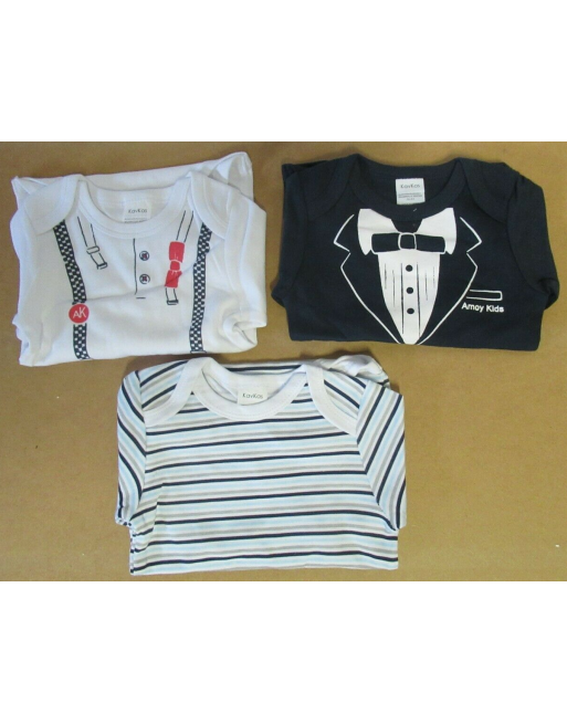 KAVKAS Lot de 3 bodies manches longues 9-12 mois imprimés