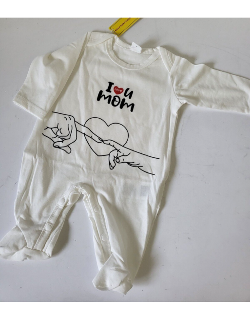 Body blanc manches longues col rond inscription I love you mom T 0-1 mois