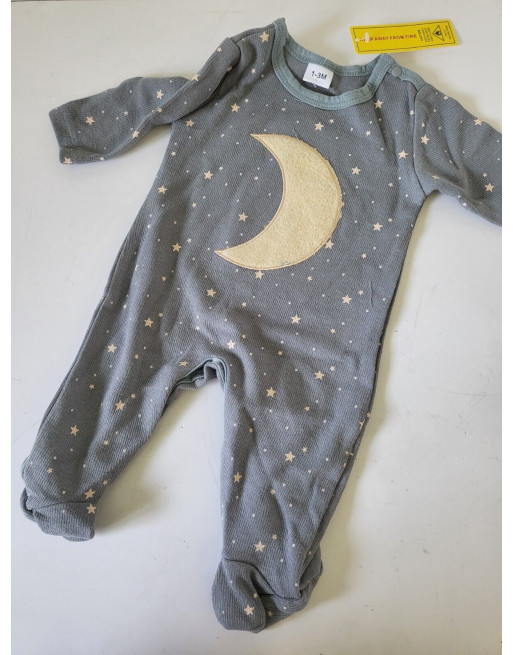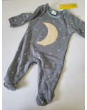 Grenouillère gris imprimé lune étoiles manches longues col rond Taille 1-3 mois
