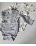 Craquez pour ce lot de 2 bodies naissance trop chou. Composé d’un body gris avec son petit renard à croquer, et d’un body écru imprimé en all over, ce lot deviendra vite un indispensable. Son ouverture croisée à pression facilitera l’habillage de bébé !
