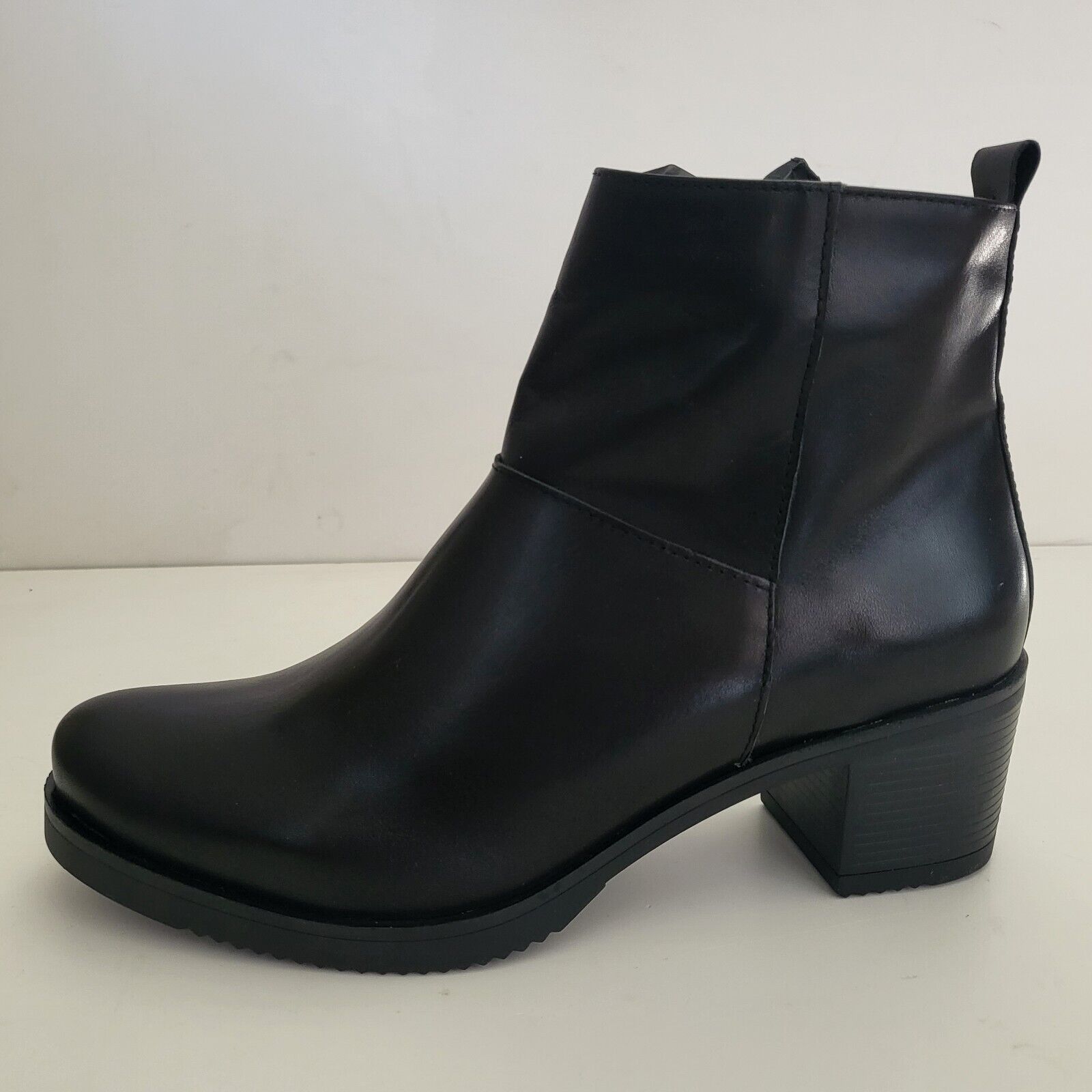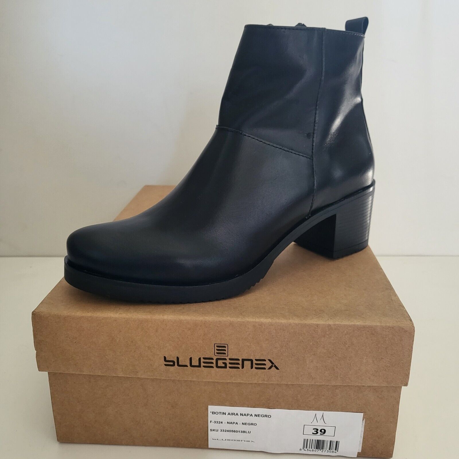 BLUEGENEX Bottines cuir noir lisse talon 5.5 cm fermeture éclair Taille 39