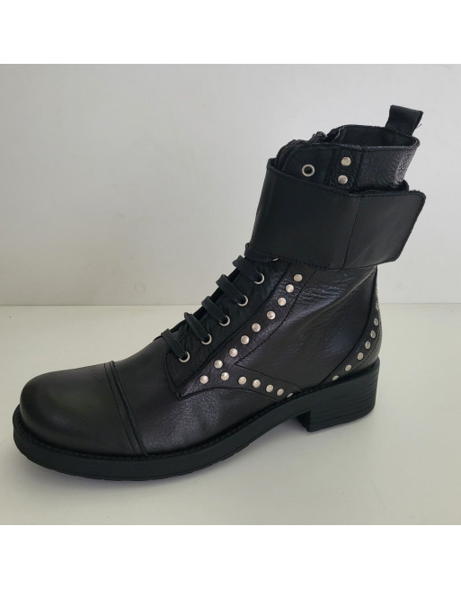 Bottines cuir noir cloutées talon 3.5 cm fermeture éclair