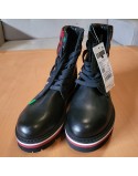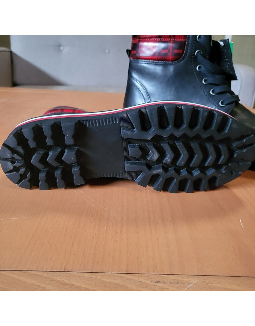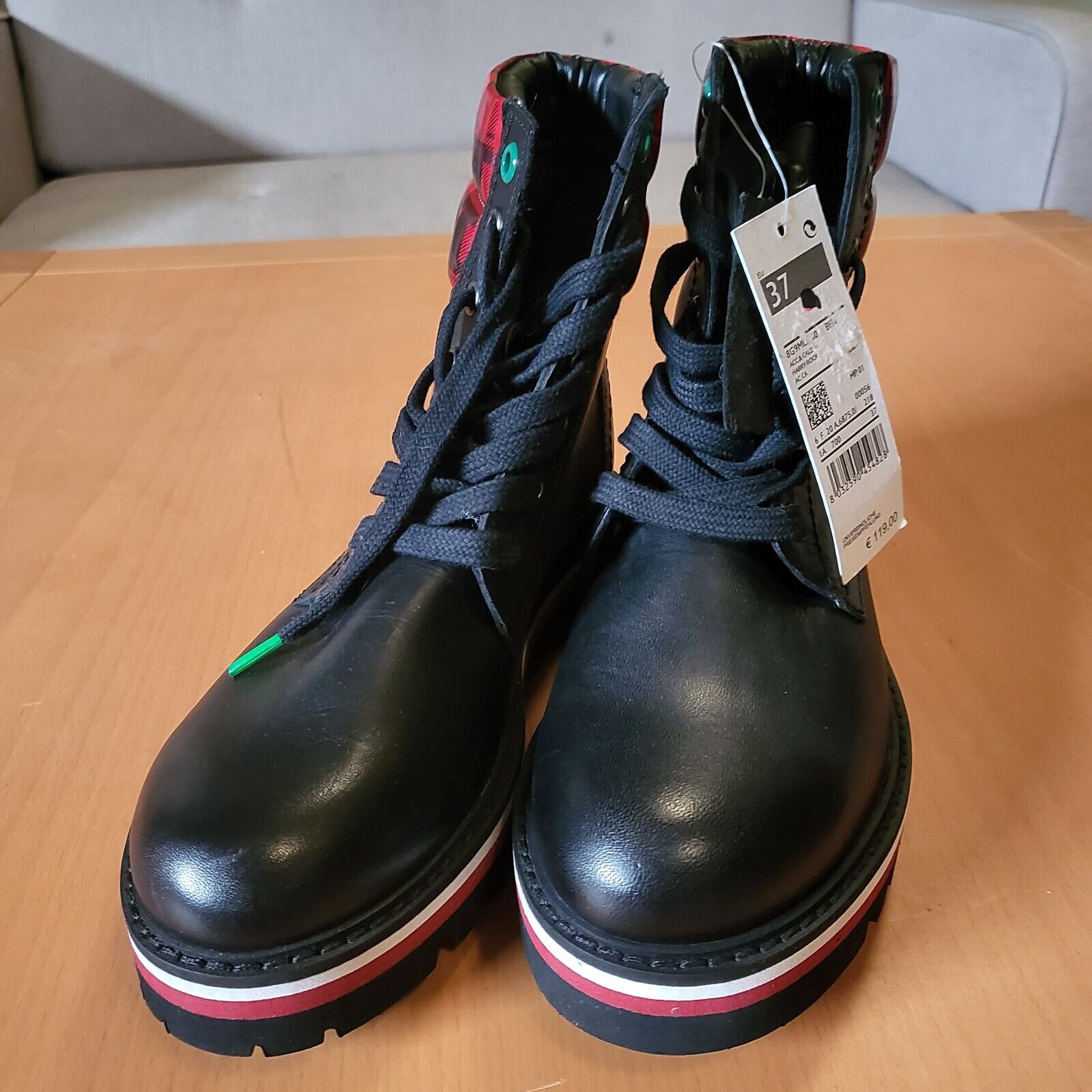 UNITED COLORS OF BENETTON Bottines noir et revers rouge cuir à lacets Taille 37