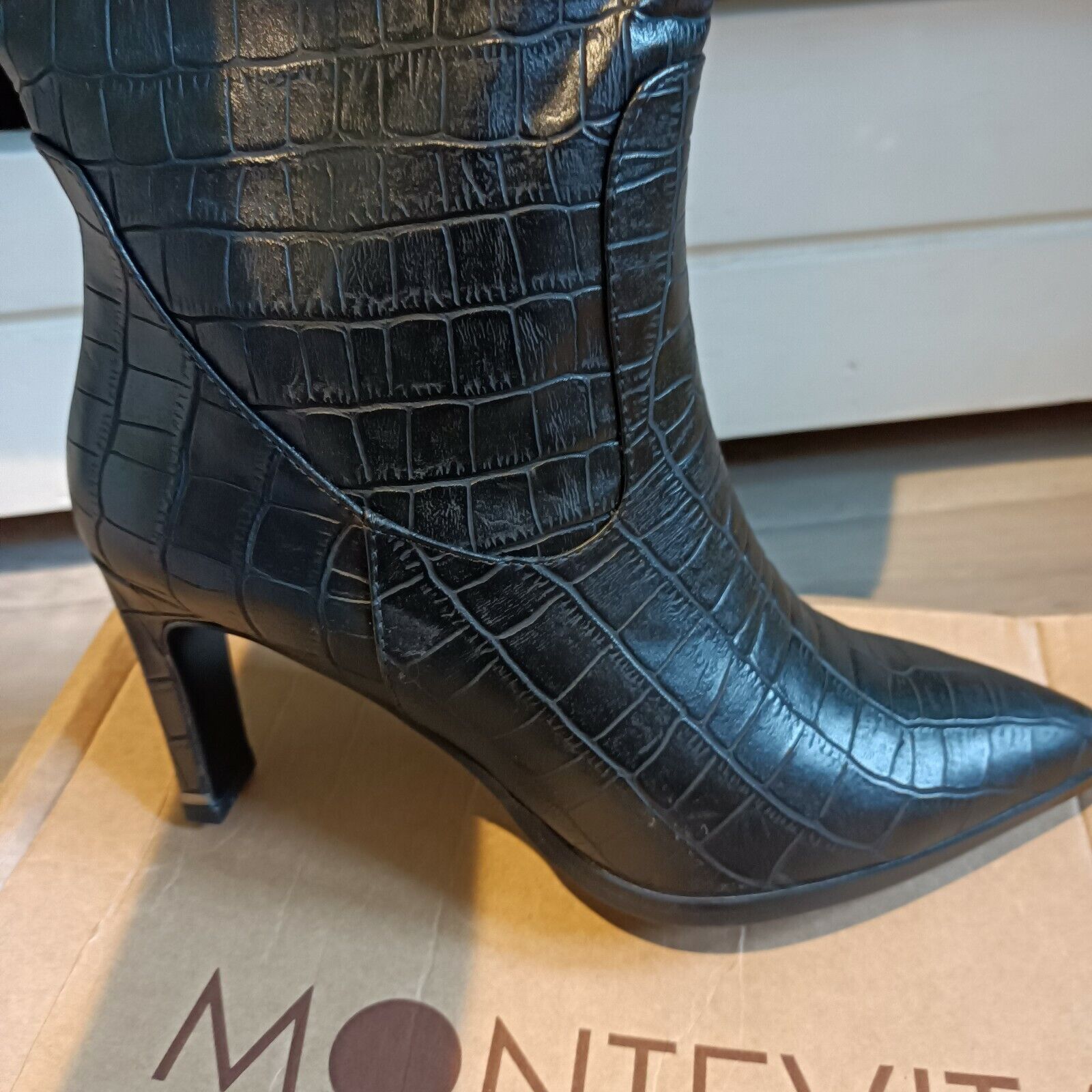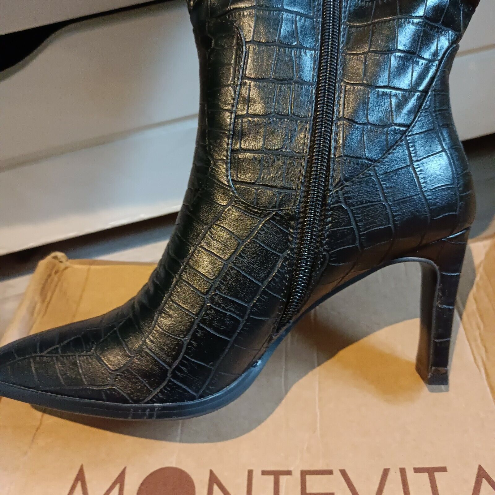 MONTEVITA Bottes noir effet croco talon 7.5 cm semelle cuir souple Taille 37 (9)