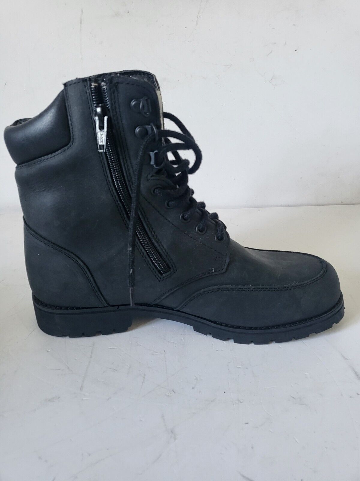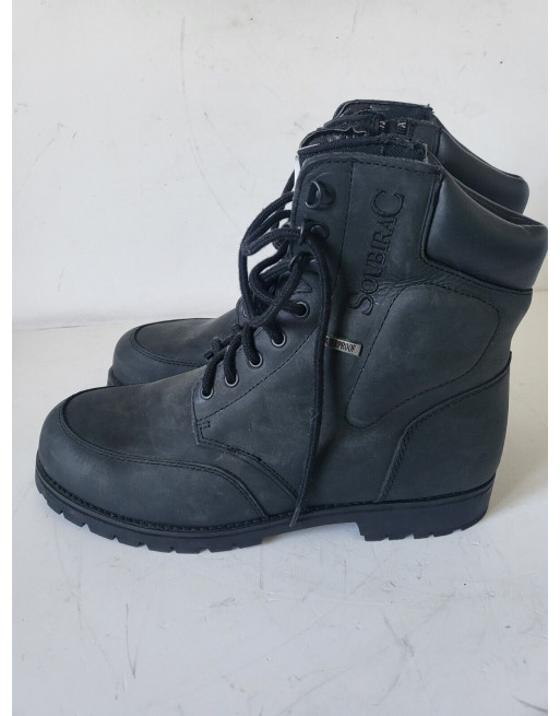 SOUBIRAC Bottillons cuir noir Tatan fermeture éclair et lacets talon plat T 45