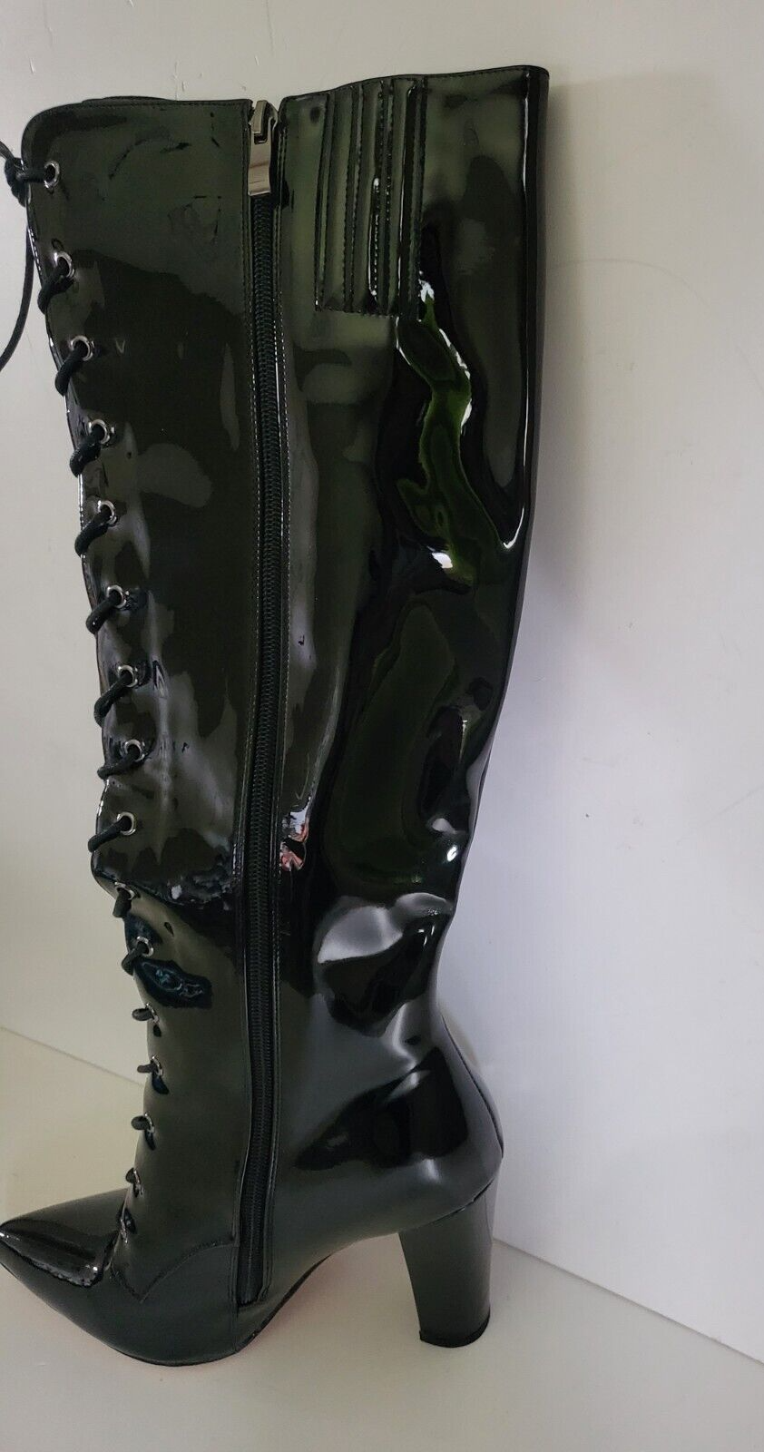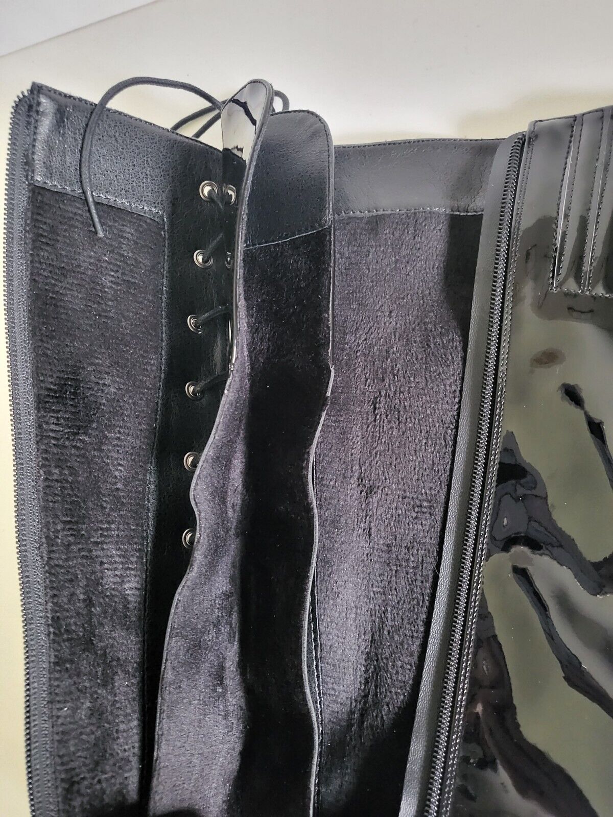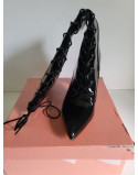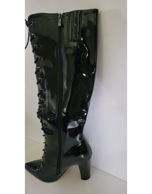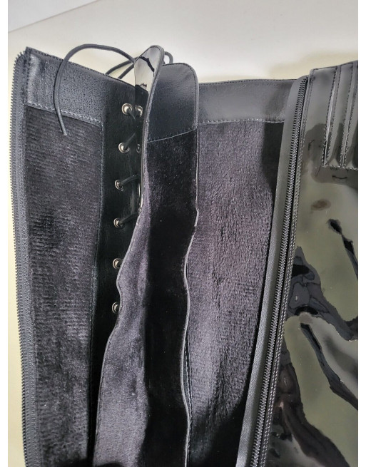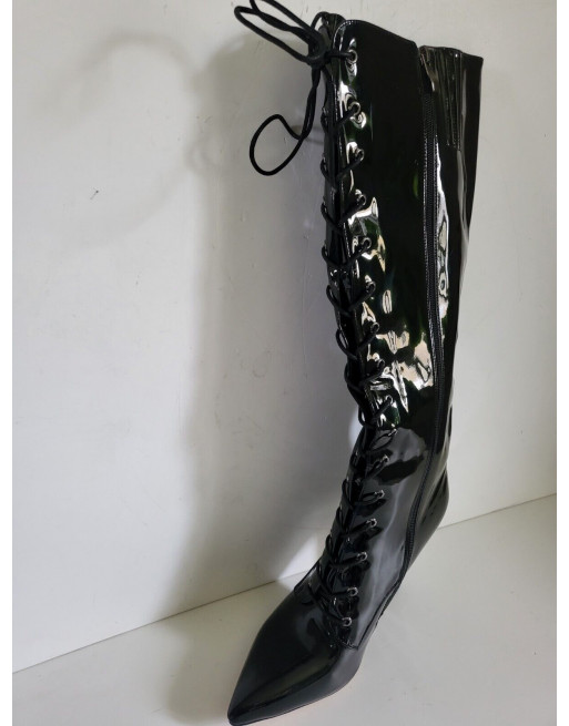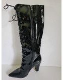Bottes fourrées noires vernis fermeture éclair et laçage talon 10.5 cm Taille 40