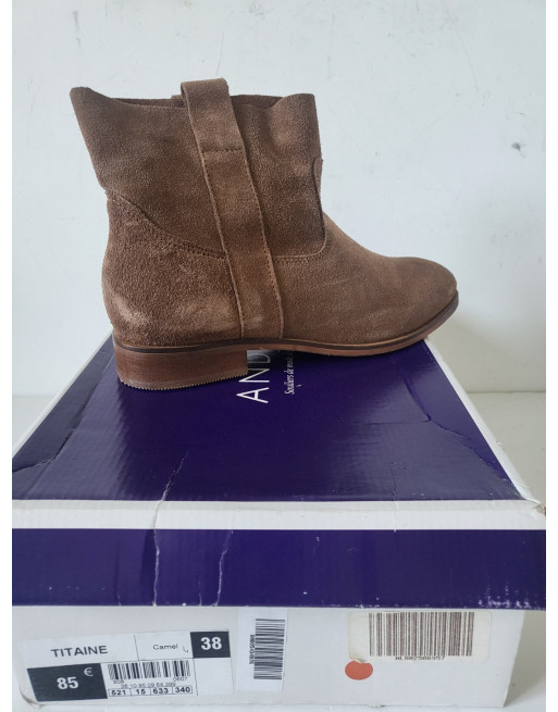 ANDRE Bottines cuir daim marron talon plat Titaine taille 38