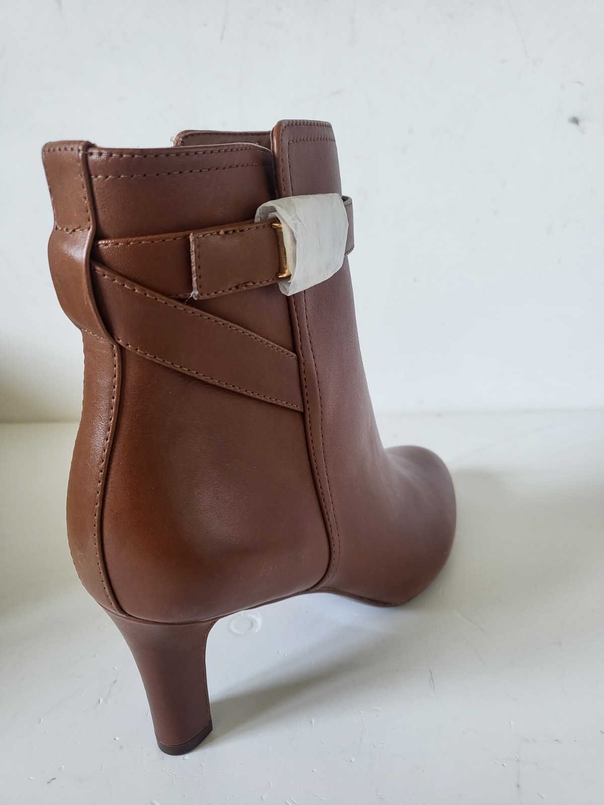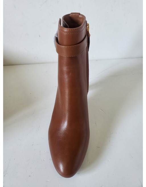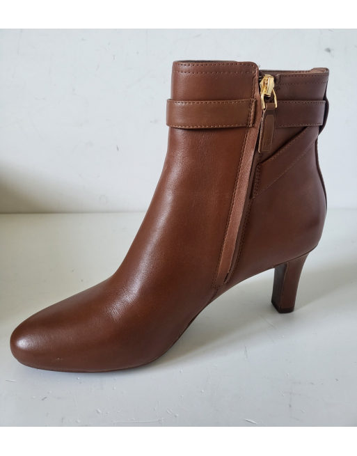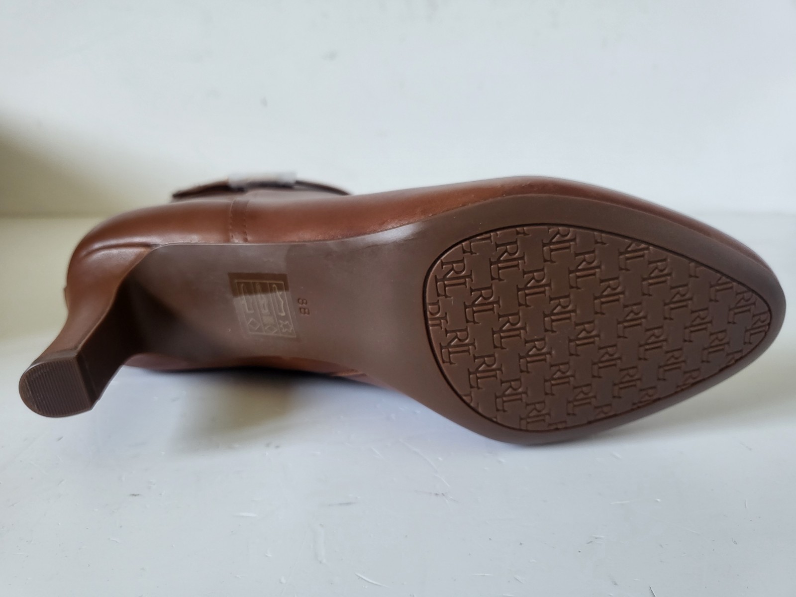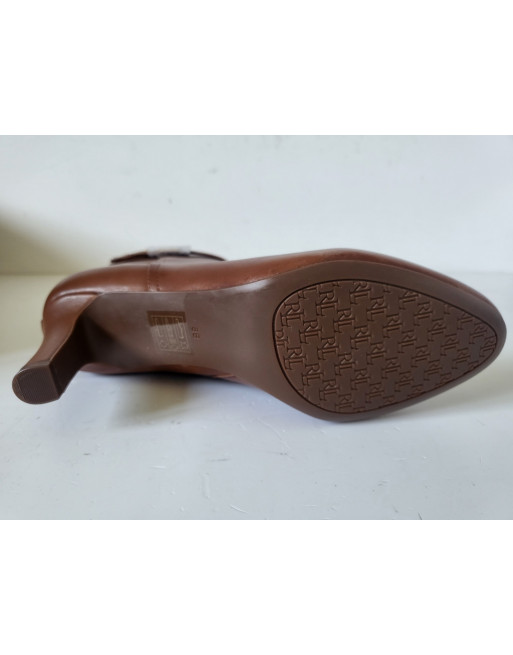 RALPH LAUREN Bottines cuir marron talon 7.5 cm fermeture éclair Taille 39